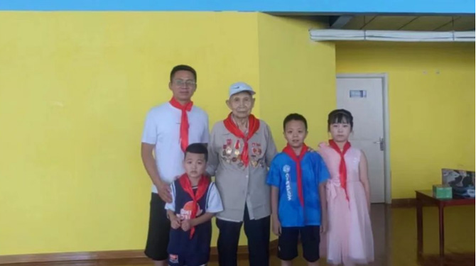 8月2日,頤信養(yǎng)老黨支部成員來(lái)到團(tuán)結(jié)西路社區(qū),與退伍老兵們重溫軍人入伍誓詞,并帶領(lǐng)社區(qū)兒童聆聽(tīng)他們的故事。退伍老兵馮博用最質(zhì)樸的語(yǔ)言分享了曾經(jīng)軍旅生涯難忘事跡,促使新一代社會(huì)主義接班人感受艱苦卓絕的革命歷程,深刻領(lǐng)悟軍人們不屈不撓、艱苦奮斗的革命精神和高尚情操,為兒童們樹(shù)立人生榜樣,培養(yǎng)遠(yuǎn)大理想和堅(jiān)定信念。最后,孩子們?yōu)橥宋槔媳灰凰蜕狭思t領(lǐng)巾與誠(chéng)摯的祝福,爺爺們微顫卻標(biāo)準(zhǔn)的軍禮、溫暖而寬厚的笑容,令在的孩子們無(wú)不為之動(dòng)容,這也是老一輩和新一代之間的精神傳承。